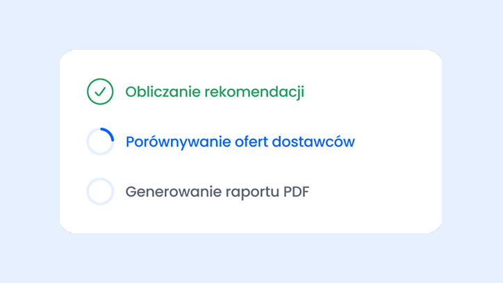 System automatycznie odczytuje dane, analizuje koszty i generuje raport wraz z listą rekomendacji.